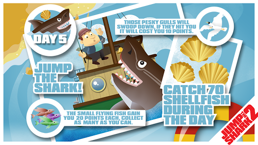 Jesteś kapitanem łodzi rybackiej na 5-dniowej podróży, postępuj zgodnie z mapą i spróbuj pokonać wszystkie stworzenia i mini-wyzwania, aby dotrzeć do końca rejsu.Są rzeczy, które pomogą Ci w podróży, ale uważaj, ponieważ dzień zmienia się w noc rekiny naprawdę zaczynają się głodować ... i jest znacznie większe rzeczy, które czają się w głębi!Prosta, ale wciągająca gra, z w grze Mini wyzwania, pokonaj sekcje zegara i wycieczki pod powierzchnią w klatce rekina w domenę stworzeń, aby Cię rozrywkę.