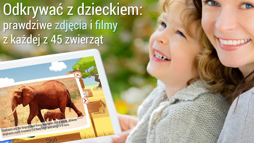 - Wybierz jego ikonę, aby zobaczyć zdjęcia prawdziwych zwierząt, ikona wideo, aby zobaczyć zwierzę w ruchu i rodzice mogą pomóc wyjaśnić dzieciom wyjątkowe fakty z każdego zwierzęcia, które są prezentowane z obrazami.