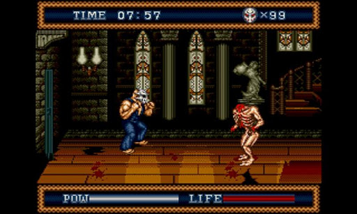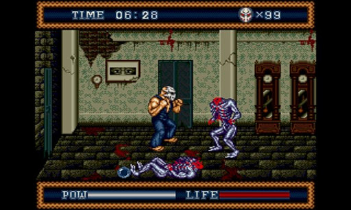 Evil Zombies are invading the city, while the hero Rick got a mask with ancient energy to save his wife and son, but the mask also has evil power to wake up. There are four possible endings, depending on if you save his wife and son, save one or the other, or fail to save them both. All endings start out with the Mask saying he'll continue to exist as long as there's human suffering, and as he shatters, it says how the sky has cleared, and that evil has once again been banished. The endings are as follow.Bad Ending: If Rick fails to save both his wife and child the ending goes as usual, but it states that Rick "stands alone, the weight of failure hanging heavily on him". It then shows a picture of him and his family, with the words "Alone... All alone."His wife Dies: If Rick fails to save her, but rescues his son, it shows the ending as normal, but that she "exists only as a memory quot;. It then shows son asking his dad where his mother is, and fades after that.His Son Dies: If Wife is rescued, but Son dies, the ending goes on as usual, but with Son "being only a memory". Wife then asks Rick where Son is, and after being told, she cries out "no".Good Ending: Should both survive, the ending is different. Apart from a more pleasant tune, the mask's dialog changes. Instead of saying that he'll survive, he cries out "Can't see... can't hear... I'm dying...!!" before shattering. It continues as normal, saying Rick returns to his family, finally free of The Terror Mask.Features:1. six different levels, Players are given a map of each level.2. A timer has been introduced to the gameplay. Each level must be cleared in a certain amount of time. Although this does not affect gameplay, running out of time results in changes in the plot, creating four possible endings. By running out of time, for example, Wife will be killed in the second level.3.You can get a Powerful weapon called Power Meter, which can be filled by collecting Orbs found throughout levels and occasionally dropped by defeated enemies. Once full, the player can transform Rick into a hulking and more monstrous version of himself with the Terror Mask being seemingly fused to his head. In this state, Rick is significantly stronger and can execute a special attack that involves pieces of his flesh extending from his chest area and acting as a weapon, injuring any monster in the vicinity of their reach. 4.Extra lives and health items are also scattered throughout the levels. passwords are also given to players to return to levels.5. Rick is able to pick up weapons to use against the monsters. 6. Once you defeat all the monsters in the room an in-game map appears to give you some choice in how you get to the end of each level.