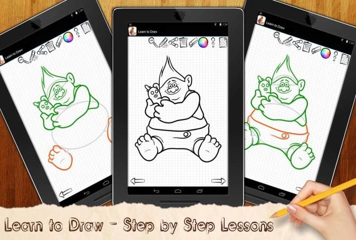 Are you bored and you do not know what you do - then we know how to entertain you! We suggest you take a fun drawing with the new «Trolls » mobile application. We teach you how to draw cartoon and games characters and do it perfectly beautiful, you should only install the app on your phone or tablet. The application works in such a way that after installation, you will have access to an extensive catalog of images. Choose a character that you want to draw, and start your fun drawing right here and now. You can choose who you draw first; it could be any cartoon character! After selecting your favorite hero you get a step by step drawing tutorial, each the lesson contains about 10 "steps", just repeat them and you will get the perfect picture, That was drawn by you own! And your drawing will be successful. Even if you draw the first time in your life, we will teach you how to do it perfectly beautiful!