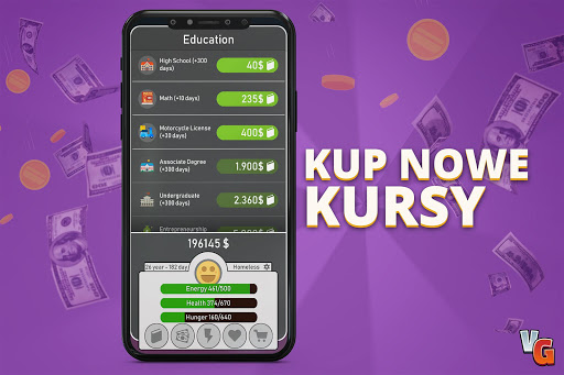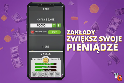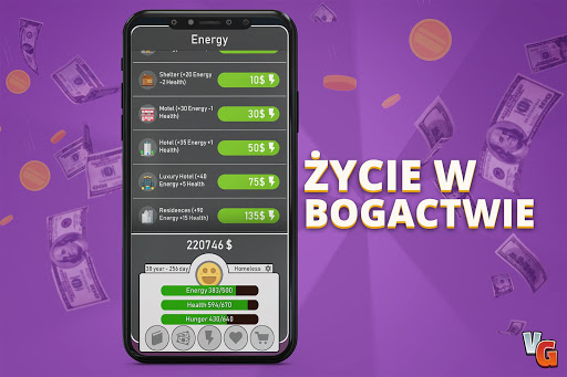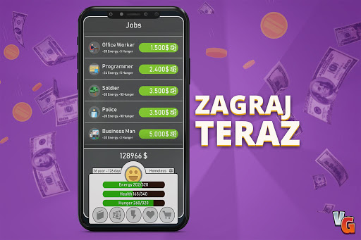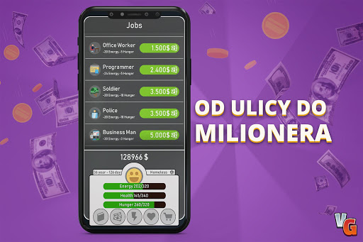 💲 Zacznij na ulicy i dotrzyj do milionerów. 💲 Możesz się poprawić, kupując edukację i pracując w lepszych warunkach. 💲 Możesz kupić luksusowe domy i jachty, zbierając pieniądze.