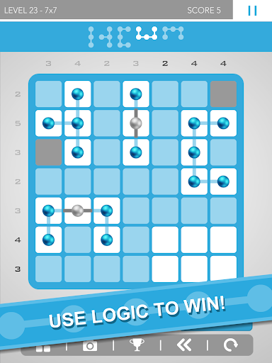 - Użyj logiki, aby wygrać: umieść kropki w siatce, aby utworzyć linie kropki i kształty, aby rozwiązać każdą układankę logiki.