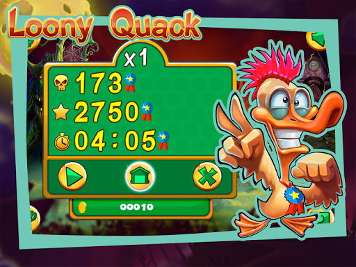 Rozgrywka w Loony Quack jest naprawdę łatwy dla wszystkich - Brak złożonych zasad, bez irytujących kontroli, po prostu rozpocznij grę i baw się dobrze. Mnóstwo kreskówków i śmiesznych kaczek nie pozwolą Ci się znudzić, a ciągły brak czasu będzie dla ciebie wielkim wyzwaniem.