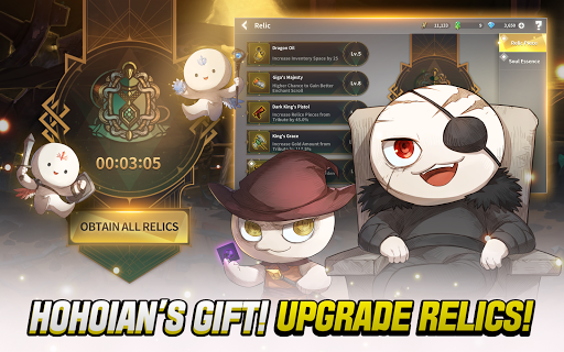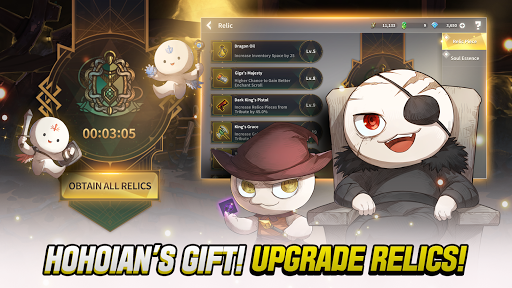 • Otrzymuj bezczynnie wygenerowane zasoby i uaktualnij relikty, aby zasilić bohaterów!