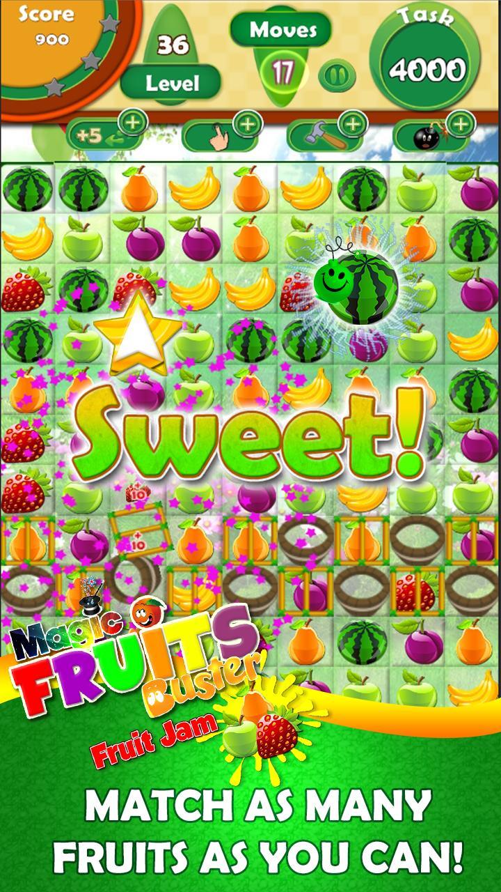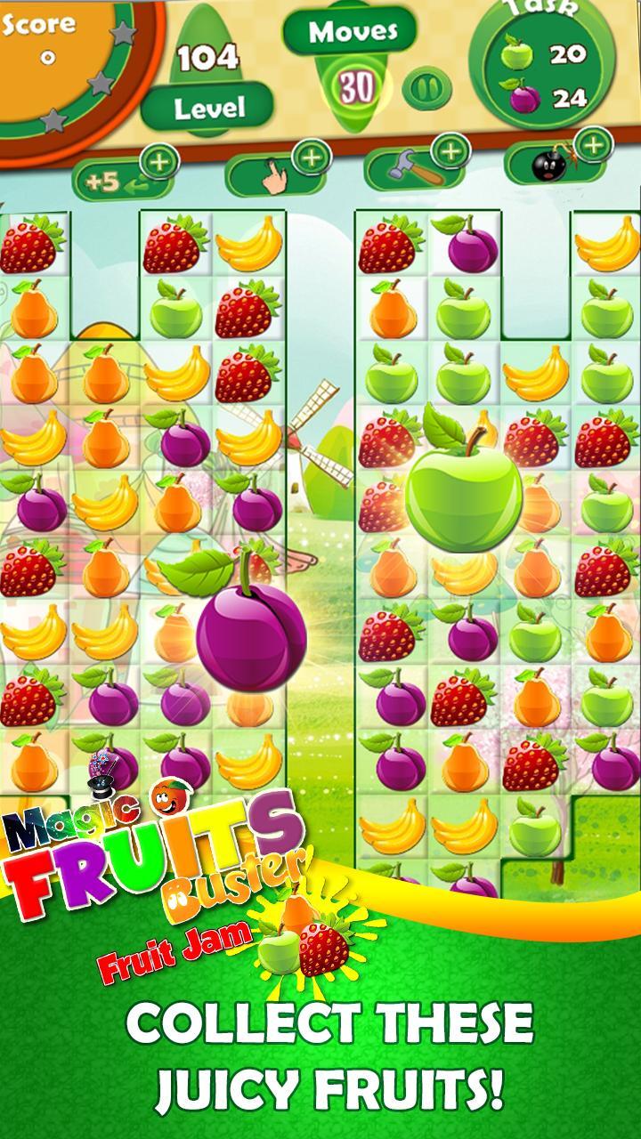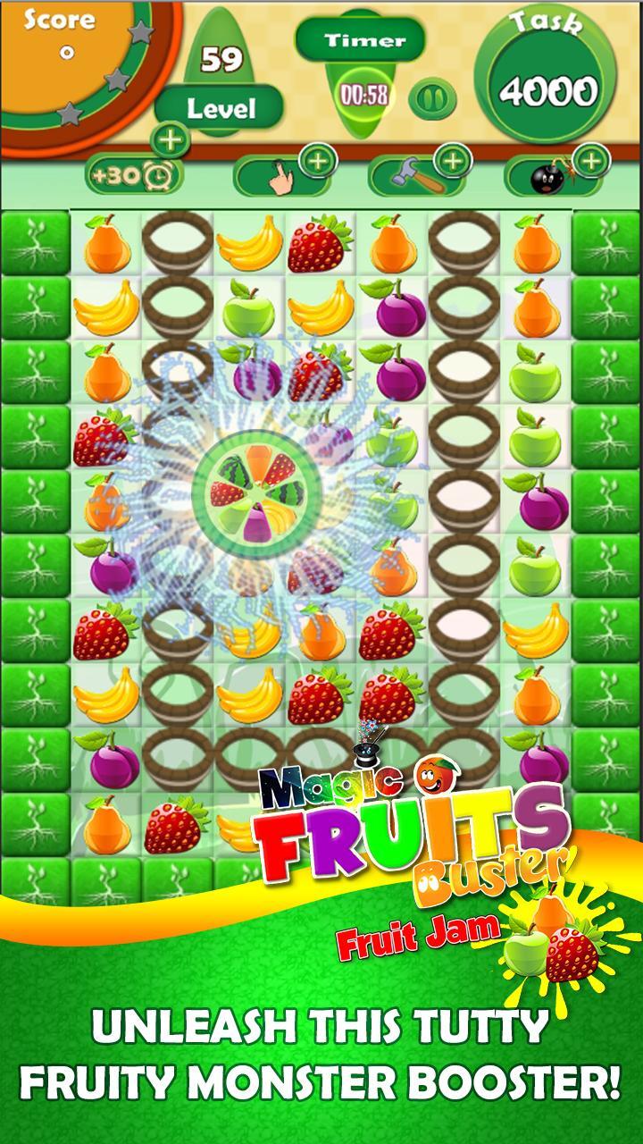Welcome to the fruity fun-filled excitement of Magic Fruit Buster-Fruit jam! Are you a master fruit buster? Burst juicy and sweet fruits in this awesome match 3 game. There are many fruity levels for your pleasure. Bursting these yummy fruits is so fun you can almost taste fruits when they splash all over your screen.