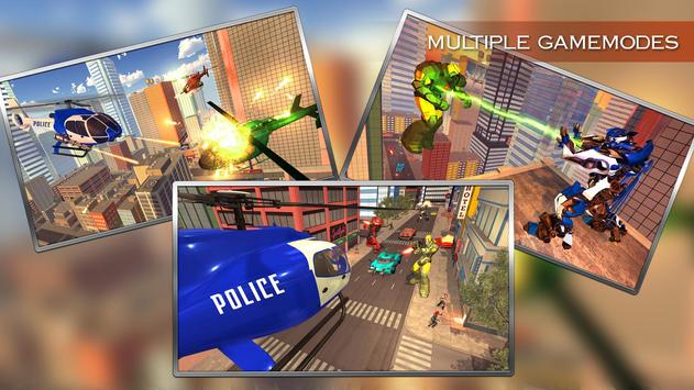 Miami Police Helicopter Transform Robot Wars Game provides you exceptional experience of becoming police helicopter robot or eminent robot helicopter along with iron robot in various helicopter rescue mission or engaging city rescue missions against x robot autobots real robot or instant killer robot superhero and their leader flying robot having battle simulator or action simulator which is causing massive destruction in world war 2 based crime city environment. In this robot battle game, be a war robot or superhero robot along with steel robot from epic wars
