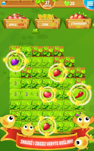 Znajdź owoce i warzywa rozsiane po polach pełnych pułapek, w razie wątpliwości skorzystaj z podpowiedzi!