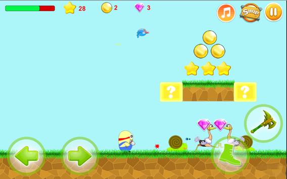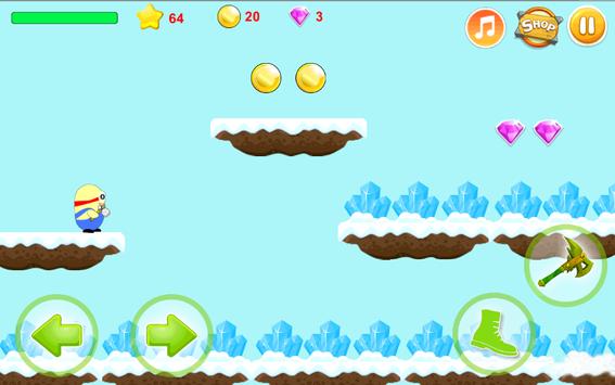 Parafighter Minion musi uratować swoich przyjaciół, rodziny i dziewczynę samodzielnie. Więc pomóż mu zdobyć potężniejsze umiejętności pokonania potworów. Skacz i biegnij i walcz przez Minion Para Fighter i baw się z 20 niesamowitych dobrze zaprojektowanych poziomów w tej pięknej przygodzie