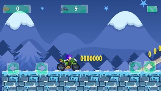 Speed up your motorbike with Sonic in this epic race adventure, help our hero to unlock all the world and all the motorbike speed. In the race you can taps to pull off stylish jumps, midair spins, and wall jumps to gather coins and reach the goal!