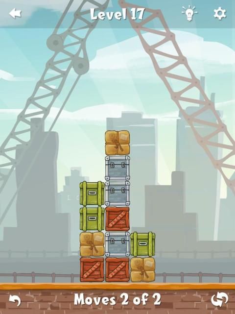 You can move, drop and swap the boxes. Three or more boxes of the same kind in a line disappear. Watch out for turns, you only have a limited number!