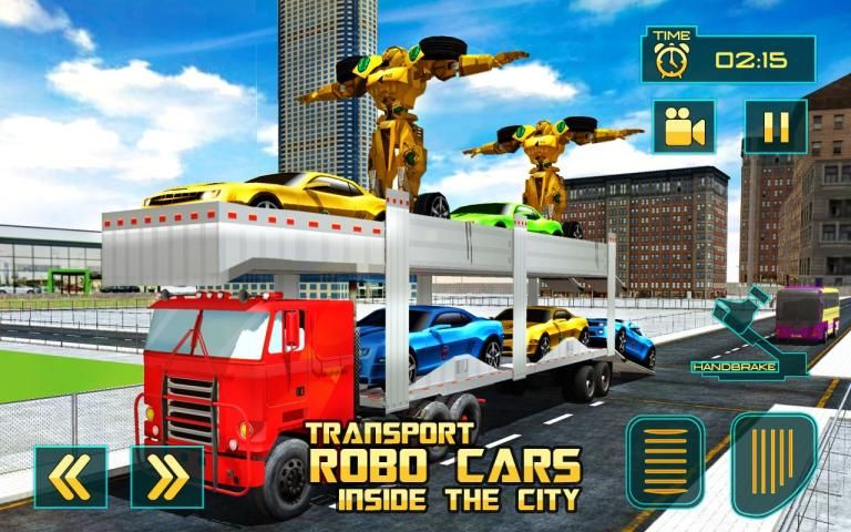 Use transforming skills to transform your car into a fine robot. Move around the city as a super robot which has splendid capability to change into automobiles; transform into state of the art, change into an elegant mechanism. This Futuristic Robot Transformation game will leave you speechless. Multi levels game with outstanding controls and graphics. The best part about Car Robot Transport Truck is the transformation of car to robot and from robot to car. So fasten your seat belt tightly and get ready to for an extreme car and truck drive on city road. This unique robot truck transport game will let you move through the city roads as a gigantic futuristic robot. Transform your robot into cars and upload them on the heavy duty truck then as a skilled and professional truck driver take the truck to the final spot without hitting.