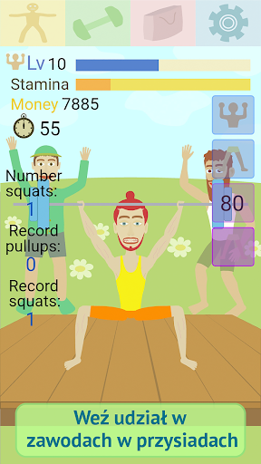 - W grze łatwo się wzbogacić. Pieniądze otrzymasz za podnoszenie hantli, pedałowanie na rowerach stacjonarnych oraz za podciąganie się i kucanie podczas zawodów.