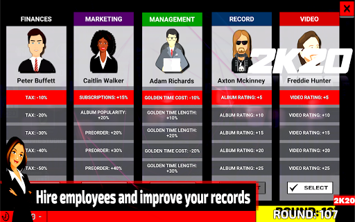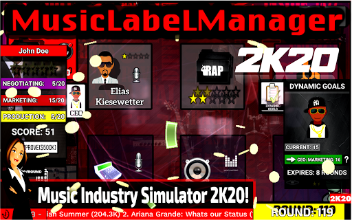 MusicLabelManager to symulator przemysłu muzycznego, który umożliwia graczom tworzenie i prowadzenie własnej etykiety rekordu.Gracze podejmują rolę CEO i starają się dokonać ich oceny na branży muzycznej.Gra ma bazy danych z ponad 500 prawdziwymi artystami, w 3 dekadach muzycznych (2020, 2000, 1990).Nagrody muzyczne, pojedyncze, wycieczki koncertowe, usługi strumieniowe i wiele więcej!