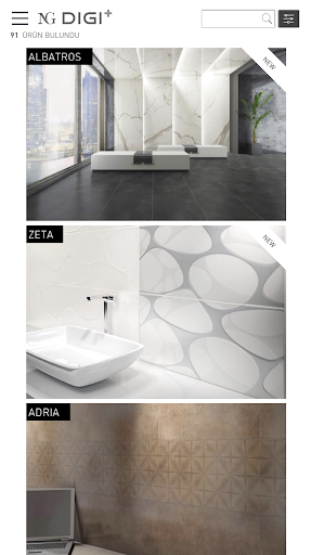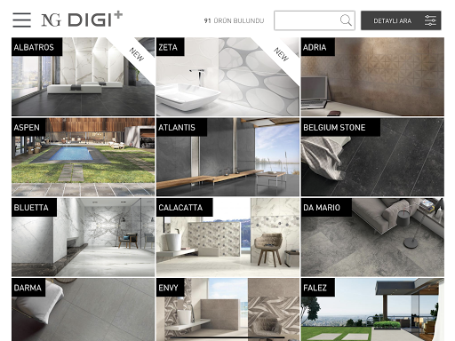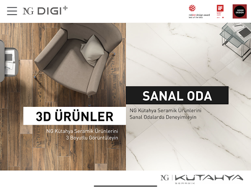 NG Kütahya oferuje inną próbę i wirtualne udogodnienia showroom dla użytkowników z aplikacją NG DIGI .NG Kütahya Ceramics oferuje możliwość doświadczenia w stosunku do właściwości kolorów, wzorów i tkanek, symulując swoje produkty dzięki technologii obrazowania 3D na platformie cyfrowej.