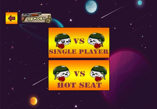 Cute Panda Wars in the great battle of Armageddon in the Panda World. drag and release and target your enemies and defeat them all. we provide 6 arenas. a bunch of weapons and do combat maneuvers with the best tactics you have.