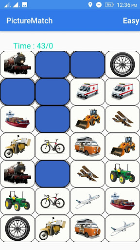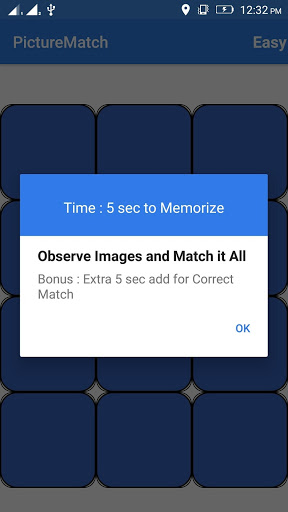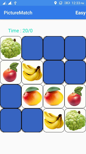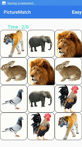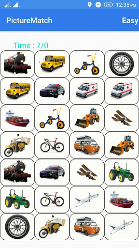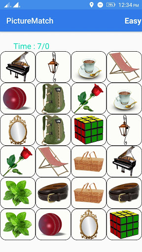 Picture match game shows several images in the screen and these images hide within five seconds.