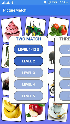 Picture match game have three levels