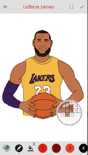 Koloruj według numerów lub rysowania słynnych graczy aplikacji jest kolorowaniem piaskownicy i farbą przez numery aplikacji słynnej koszykówki i piłki nożnej i piłki nożnej. Możesz kolorować numbers słynnymi graczami, a następnie udostępniają zdjęcie kolorowe pixel-ated. Jest to darmowa aplikacja do kolorowania; Odblokujesz farbę reklamami, ale możesz również subskrybować pełny dostęp.