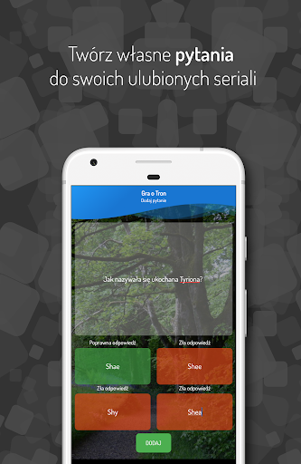 Nie mamy serialu, który uwielbiasz? Nie bój się i wyślij nam jego nazwę, używając przycisku 'Zaproponuj serial' w menu głównym. Możesz być pewny, że dodamy go w kolejnych aktualizacjach :). Również, możesz dodawać własne pytania, sprawiając, że będą one częścią gry i będą mogli na nie odpowiedzieć ludzie z całego świata.