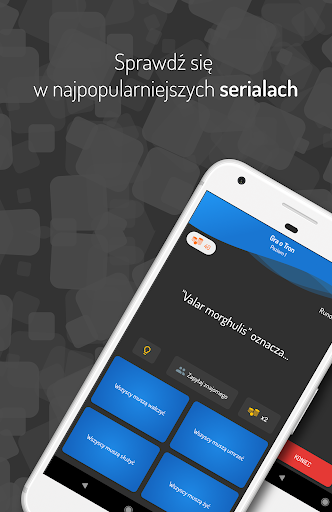 Sprawdź swoją wiedzę w swoich ulubionych serialach, zbieraj punkty, kompletuj osiągnięcia i spróbuj dotrzeć na szczyt tabeli wyników, by udowodnić, że jesteś najlepszy na świecie. To będzie najlepszy quiz w jaki kiedykolwiek grałeś.