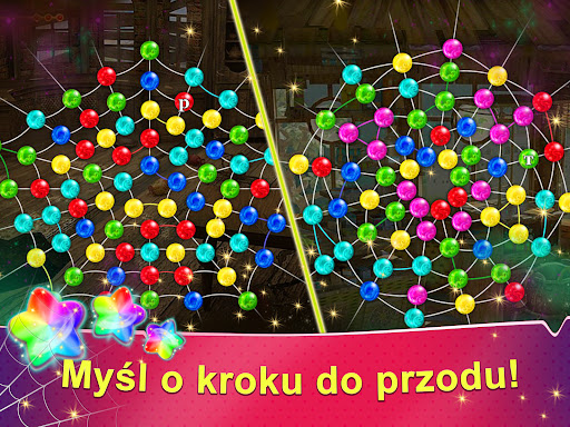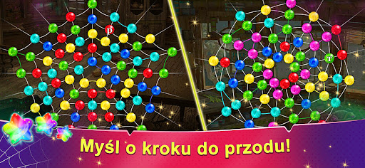 Dlaczego pole gry jest takie dziwne? Ponieważ to sieć, którą Pająk Czarodziej oplótł miasto Mistrzów. Kształt pola pozwoli ci myśleć poza schematami i zrealizować swój potencjał gracza 'trzy w rzędzie' w zupełnie nowy sposób! Koraliki mają kolory tęczy, zbierz je wszystkie i tchnij nowe życie w Królestwo Tęczy.
