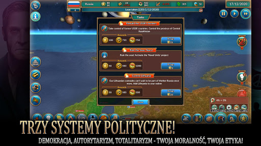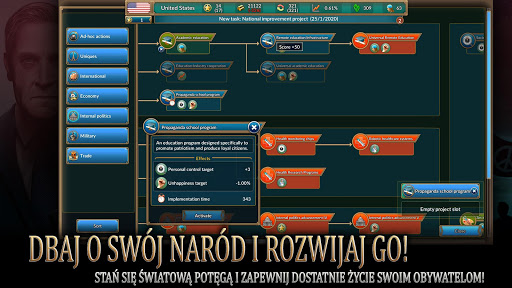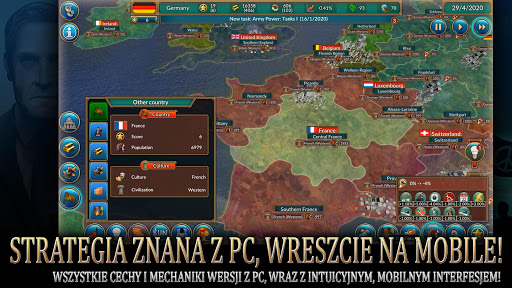 - Prowadź dowolne państwo w świecie globalnej dominacji w różnych scenariuszach gry.