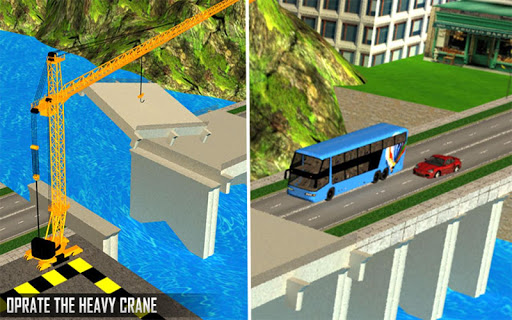 Take part in a big bridge construction with tower crane, lift and lower concrete slabs and perform all-important jobs for construction in this simulator. If your dream is to build a river bridge and riverside road then this construction simulator is made for you. Working with a tower crane is funny and challenging. Become the best bridge crane operator in the city. Even you can't drive a tower crane or build a bridge in real life, you can build in the construction simulator. Build all bridge; don't disappoint the construction workers. Once you have done with tower crane, operation is not over. Take control of heavy road builder machinery and build the road.