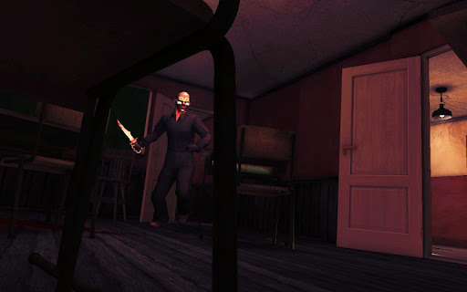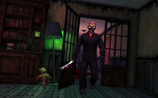 The fear of survival in a creepy haunted house by a scary jumpscare Slasher that can hear any noise (Be careful!). The slasher seems to be a mix between midnight man and…the boogie man, a victim of a deranged killer or any other dead soul. The fear of death is after you, insidious slasher will kill you and your family if he finds you and an escape from the adventure will be over. Explore the haunted house full of terrifying mantraps and secret hiding places like in the most amazing survivals. Hide anywhere! Inside the haunted house …Great hiding places can be under the bed or in the wooden wardrobe!