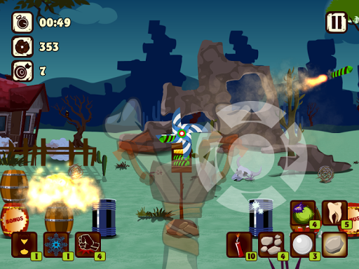 - Strzelaj na środku talerza obrotowego, aby uruchomić rakietę do beczki.