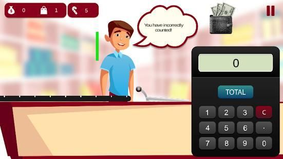 Depending on the speed and accuracy of the cashier's calculations, the level is assigned to the level, and the cashier is credited with money.