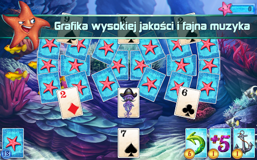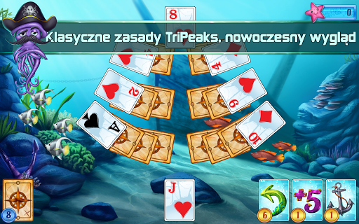 Ciesz się żywym motywem bycia pod wodą podczas zgłębiania map piratów i podążaj wraz z nurtem tej zabawnej przygody z grą w pasjansa. Zetknij się z kałamarnicami piratów, rybami, dzikimi krabami, a nawet pirackim pławikonikiem. Idealna rozrywka dla miłośników gier przygodowych w karty lub piratów.