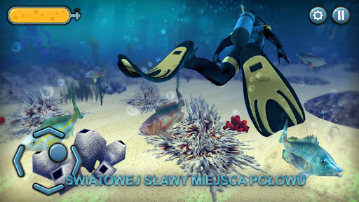 Barrakuda i wielki rekin to twoje dwa największe zagrożenia, uważaj na nie! Idąc na ryby pod wodą nie potrzebny będzie ci kołowrotek, ani sprzęt wędkarski, żaden haczyk (czy też hak), żaden robak, ani przynęta, ani wędka, a także nie potrzebna będzie ci sieć. Prawdziwi mężczyźni idąc na ryby mają na myśli łowiectwo podwodne (to nadal wędkarstwo) - potrzebna jest do tego kusza lub harpun. Zrelaksuj się i ochłoń.Czeka ciebie przygoda w podwodnym świecie w najlepszych miejscach do łowienie ryb. Wędkarstwo: Łowiectwo Podwodne to najlepszy symulator sportu łowiectwa podwodnego. Chodźmy na polowanie! Czerp radość z łowiectwa podwodnego na realistyczne ryby: od sumów, po karasie, albakory (tuńczyk biały), a także większe gatunki ryb, takie ryby jak basy, a także białe rekiny. Mamy ponad 100 różnych rodzajów ryb! Podwodne polowanie to sport, najlepszy sport na świecie! Przekonaj się sam. Zwiedzaj fotorealistyczne miejsca, takie jak Wybrzeże Florydy, Wielka Rafa Koralowa, Morze Czerwone, Morze Bałtyckie i wiele innych! Wędkarstwo pod wodą! Zostaw swój sprzęt wędkarski, zapomnij o przynęcie i idź na ryby jak prawdziwy mężczyzna! Przygotuj swój kostium do nurkowania (nurkowanie pod wodę jest niezbędne), przygotuj swoją broń (kusza lub harpun), akwalung i nurkuj! Nurkuj i poluj na ryby w podwodnym raju! Strzelaj celnie do ryb! Zagraj w Wędkarstwo: Łowiectwo Podwodne i doświadcz jak to jest być nurkiem, podwodnym łowcą z kuszą czy też harpunem. Kto wie kiedy przypłynie kolejna ryba z tego gatunku. Zwiedź najpiękniejsze miejsca łowieckie na świecie! Zostań najlepszym morskim łowcą ryb: niech woda stanie się twoim naturalnym środowiskiem. Podwodne polowanie na ryby wymaga cierpliwości, ale satysfakcja po złowieniu rzadkich ryb jest tego warta! Zadbaj o tlen i nie daj się otruć lub zjeść przez głodną i ogromną rybę! Wykonuj misje!