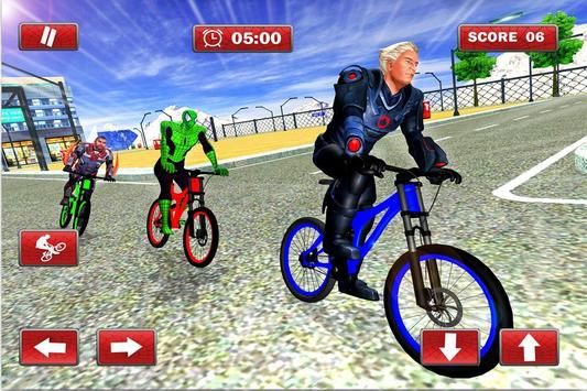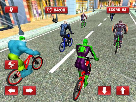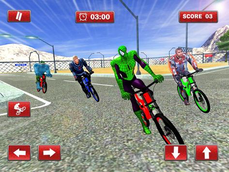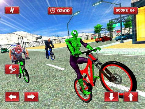 Przygotuj się na wycieczkę rowerową w supergodzinną podróż rowerową do pająków z innymi superbohaterami na cyklach BMX, miasto jest pełne ludzi, aby zobaczyć tych bohaterów rywalizować w niesamowitej przygodzie rowerowej. To wyścigi motocyklowe pająków oferują stunty w czasie rzeczywistym i niezapomniane występy, spider hero nieograniczone wyścigi konne wokół miasta gangu i zobacz ten śmiertelny konkurs superbohaterów.