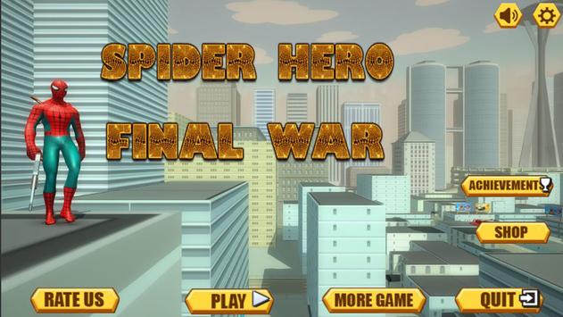 Incredible spider hero fan will love playing this flying Spider Hero: Final War game attacking on the multiple enemies in war battle. Dress like super villain and comic superhero no rope hero or transforming spider hero robots to war battle as incredible spider hero.