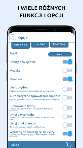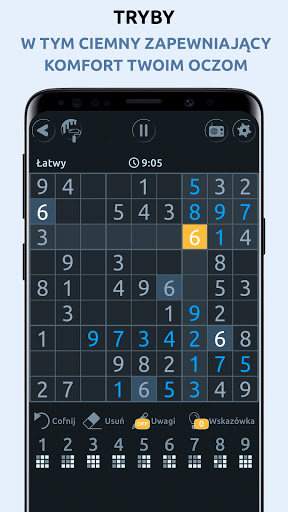 - Automatyczne sprawdzanie błędów: zaznacza cyfry, które nie pasują do rozwiązania