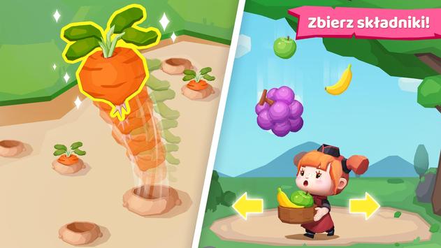 - Przejedź palcem, by przeciąć warzywa. Kto pierwszy skończy krojenie 80 warzyw, zostanie mistrzem tej rundy.