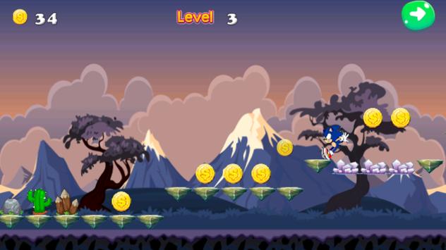 We are not affiliated in any way to trademark owner. This application complies with US Copyright law guidelines of "fair use". If you feel there is a direct copyright or trademark violation that doesn't follow within the "fair use" guidelines, please contact us directly. Our application is an unofficial, this adventures game just for fans purpose only, it is not authorized or created by the original creator. Enjoy and Play Classical platformer with sonic Character !