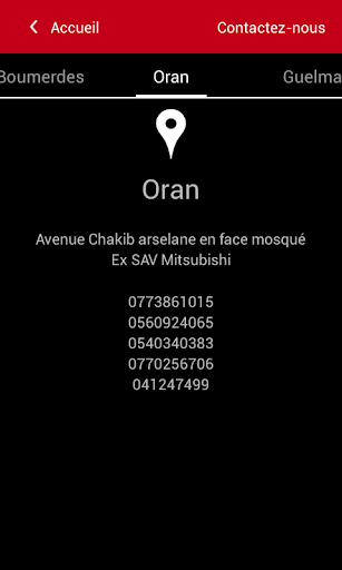 Avec cette application, vous aurez l'accès à notre entreprise par :
