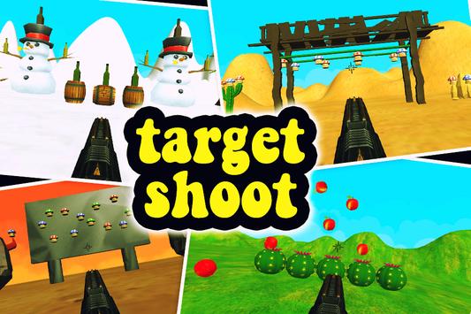 Target Shoot 3D game is cool, simple and challenging reaction game. Your task is to shoot mushroom, bottle or fruits with your gun. Aim as good as possible before you fire the bullets and try to act fast, because you have limited time in each level.
