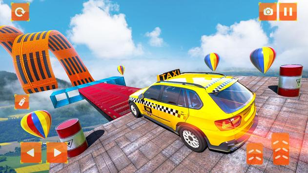 Zagraj w Taxi Car Stunts 2 - Ramp Car Games 3D z taksówką prado, jeepem taksówki, taksówkarzem i krążownikiem lądowym.