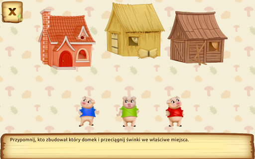 Oto interaktywna opowieść oparta na baśni “Trzy małe świnki”, zawierająca wiele gier edukacyjnych i łamigłówek dla dzieci w wieku 3- 5 lat. Aplikacja została opracowana przez profesjonalnego psychologa dziecięcego, by wspomóc dzieci w podstawie nauczania. Zadania rozwijają logikę, pamięć i spostrzegawczość. Są również dostępne osobno, każde z 4 poziomami trudności.