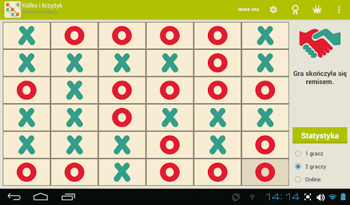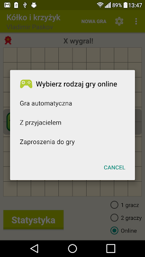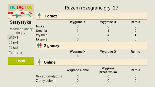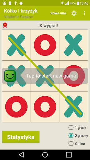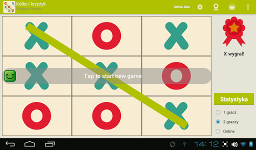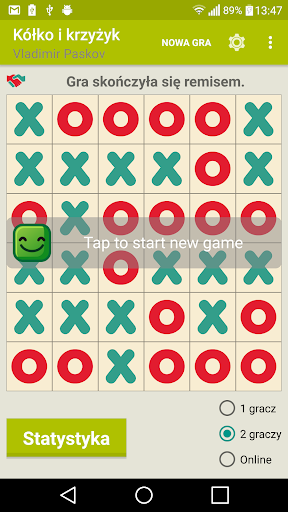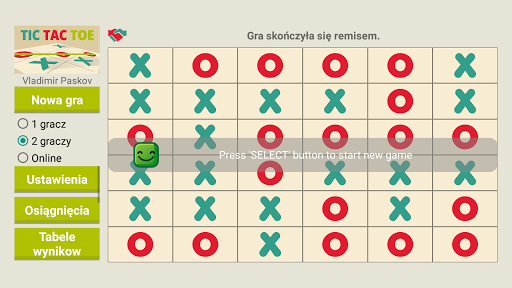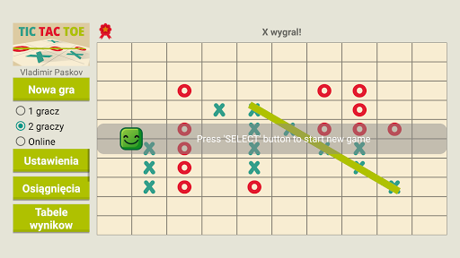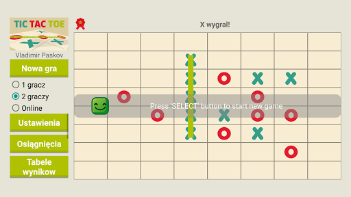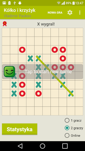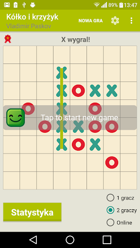 Gra of Tic Tac Toe z singlem (przeciwko AI), trybami gry wieloosobowej i online.