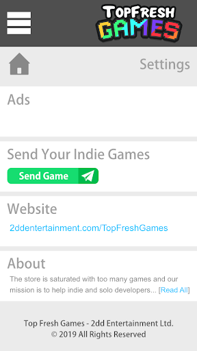 Now these days mobile-apps-stores are saturated with too many games specially the Google Play Store. And new indie developers seems to have no chance to get discovered and for the most of the parts this is because of big company’s ads campaigns always keep their app on top for months and sometimes even years. That’s why the App “Top Fresh Games” exists. Top Fresh Games is an app that works as catalog where Indie Games can be found without been opaqued by big companies games.