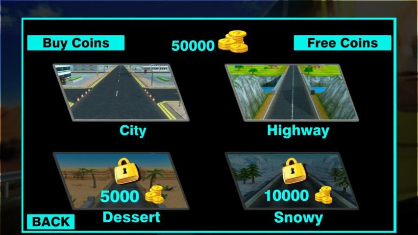 4 Environments - 1) City drive 2) Highway race 3) Dessert race 4) Snowy race