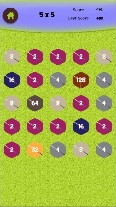 * Make lines by merge a more Haxa of same numbers and make more points as you can.