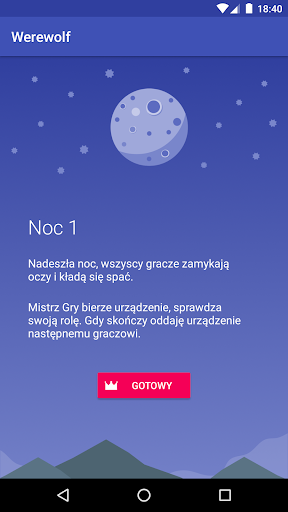 Jeżeli chcesz zagrać w Werewolf (znana także jako Mafia), ale brakuje ci zestawu kart i nie czujesz się aby używać długopisa i papieru, ta apka jest dla ciebie. Po prostu zkonfiguruj ilu graczy będzie uczestniczyło, jakie role chcesz używać (np. Ilu wilkołaków etc.) no i lecisz. Będziesz mógł podawać urządzenie dalej oraz każdy z graczy stuka by ujrzeć swoją role/