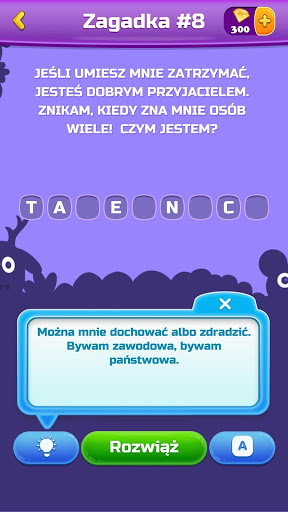- Specjalnie dopasowane do Twojej wersji językowej fajne zagadki z odpowiedziami: odgaduj zagadki po polsku, angielsku, hiszpańsku, francusku, malajsku i w wielu innych językach