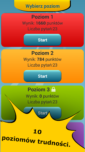 - na każdym poziomie są 23 flagi krajów (w sumie 230 flag narodowych (krajów i terytoriów zależnych) do odgadnięcia!),