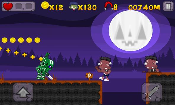 Use power-ups to kill more zombies and save your town from the zombie apocalypse, use lightning powers, get extra coins, turn into an immortal ghost and call a Titan Mech!. Run , jump and shoot like a zombie killing ninja, collect coins and powerups, just tap the screen and