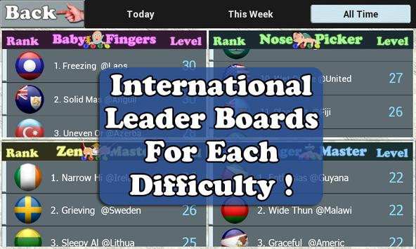 Challenge people from all over the world by playing a game and trying to beat the top scores in the boards ! There is a leader board for each difficulty, and you can share your score on Facebook and Twitter !